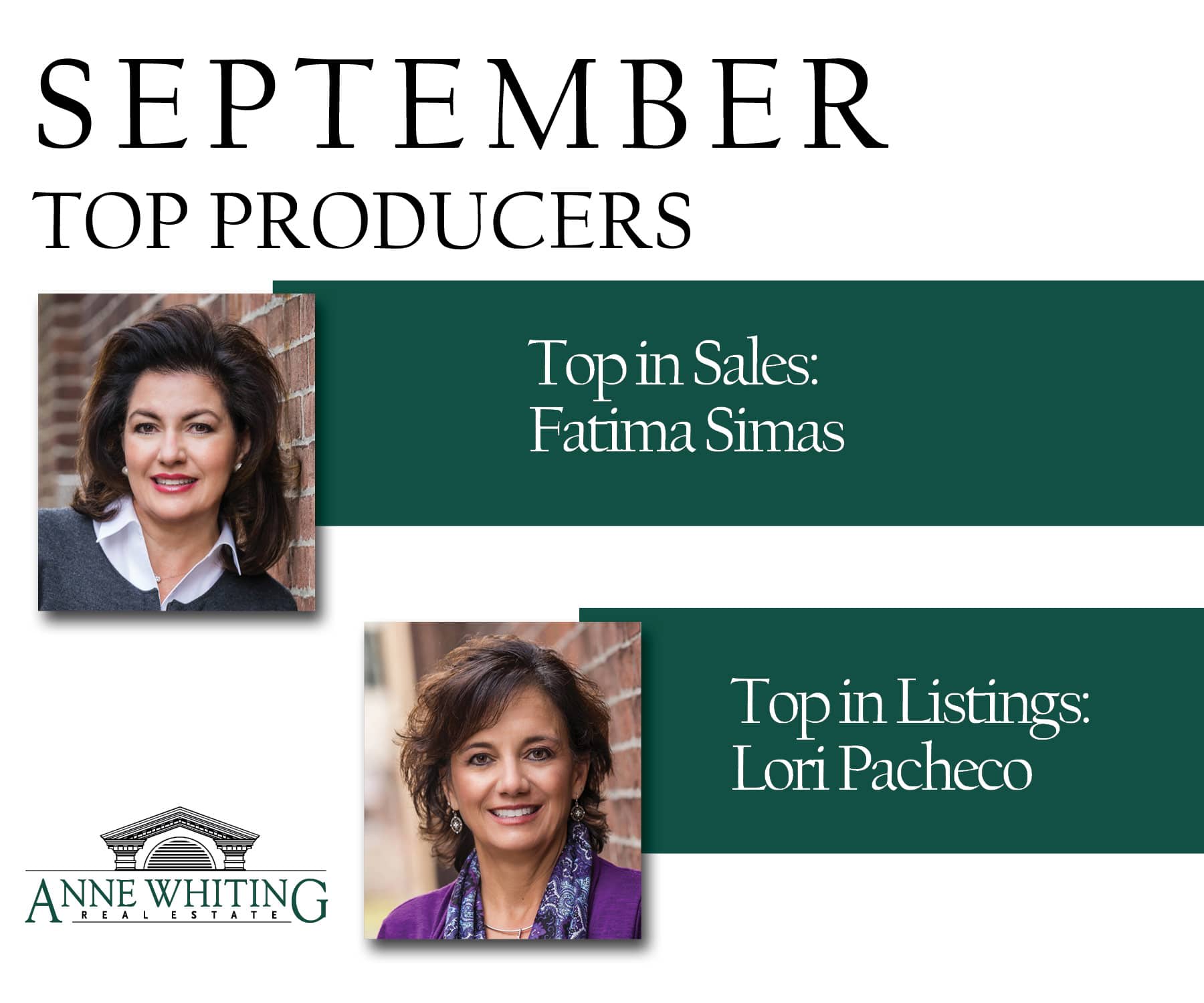 Anne Whiting Real Estate Congratulates it’s September 2021 Top Producers