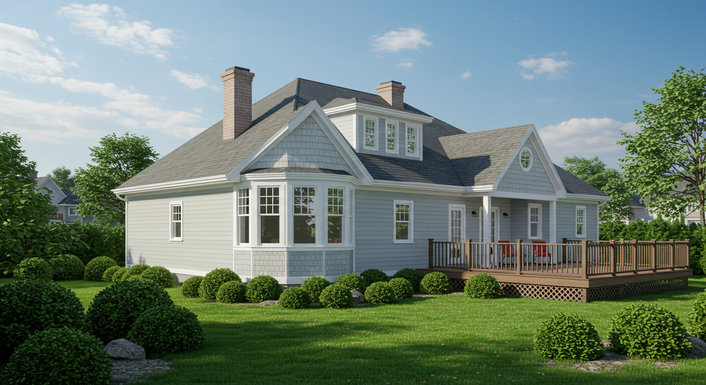 Oversized custom built Cape is situated on a quiet tree lined street in Merrymount.