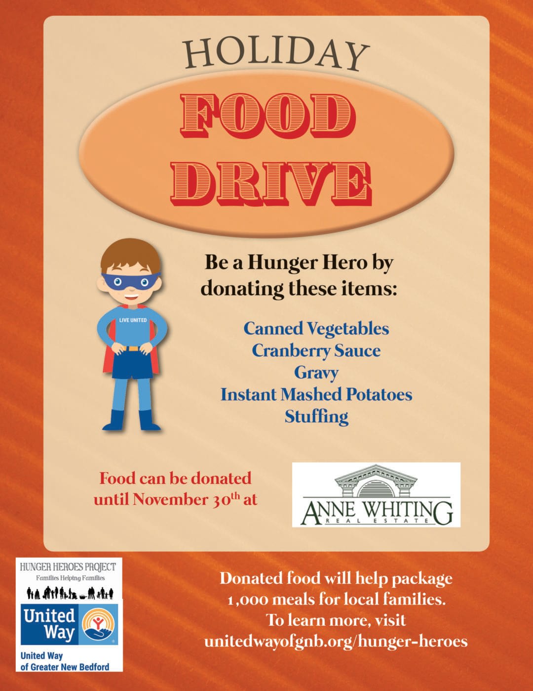 Visit Anne Whiting Real Estate to drop off any of the below food items the month of November for the United Way’s Hunger Heroes food drive: